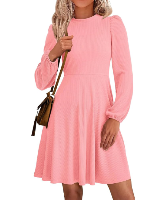 PRETTYGARDEN Women’s Long Sleeve Ribbed Knit Mini Dress – A-Line Flowy Dress