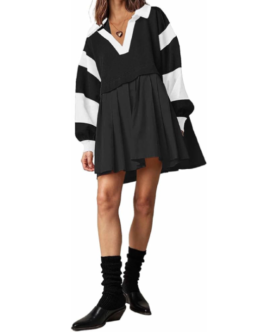SAUKOLE Women’s Oversized Patchwork Sweatshirt Dress