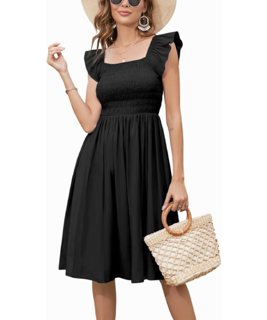 Simier Fariry Women’s Summer Smocked Knee-Length Dress with Pockets