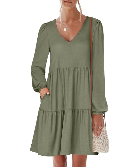 ANRABESS Women’s V-Neck Tiered Flowy Dress – Fall 2025 Casual Short Dress